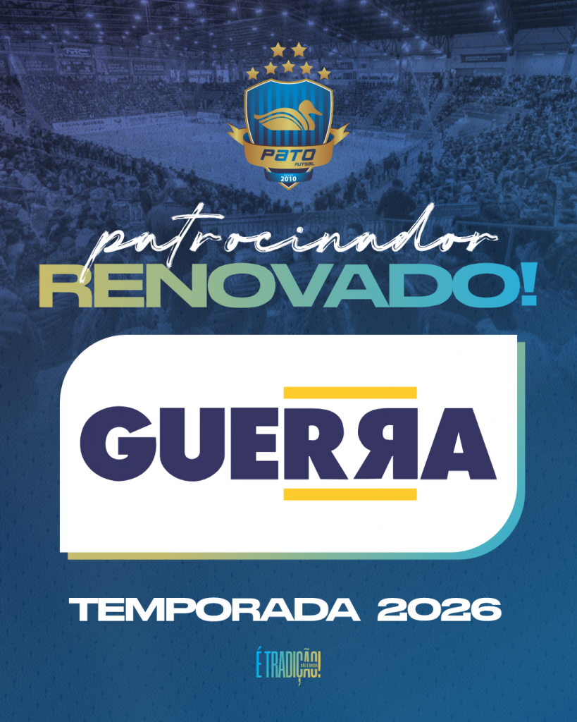 O Pato Futsal confirmou a renovação de patrocínio com a Industria Química Guerra para a temporada 2026. O acordo foi oficializado nesta sexta-feira (25). Com forte identificação com o projeto de futsal em Pato Branco, desde a sua fundação, seguem patrocinando o atual bicampeão paranaense.