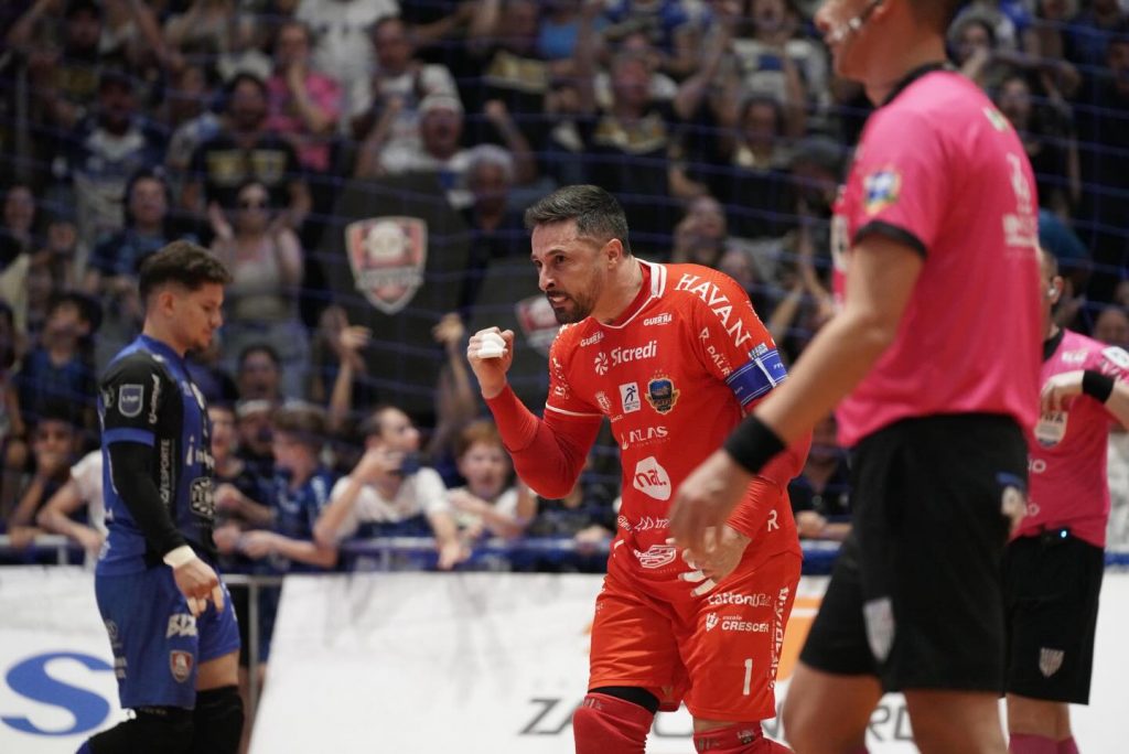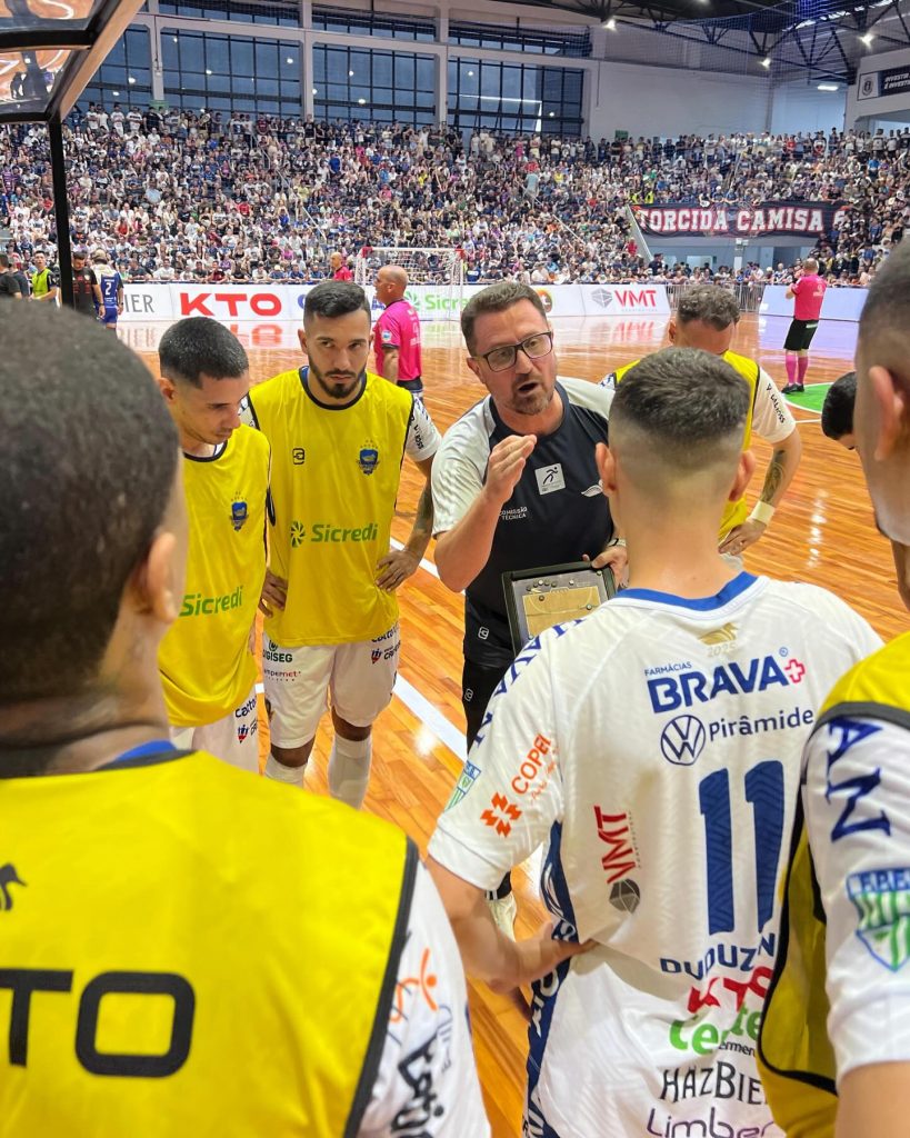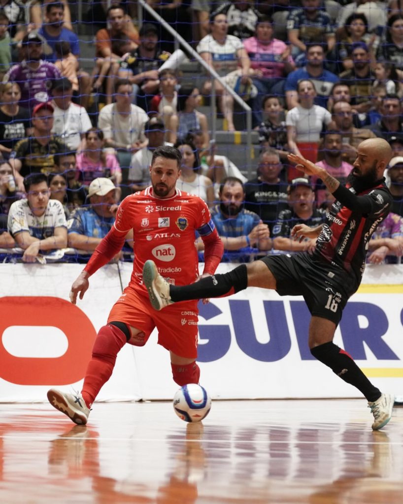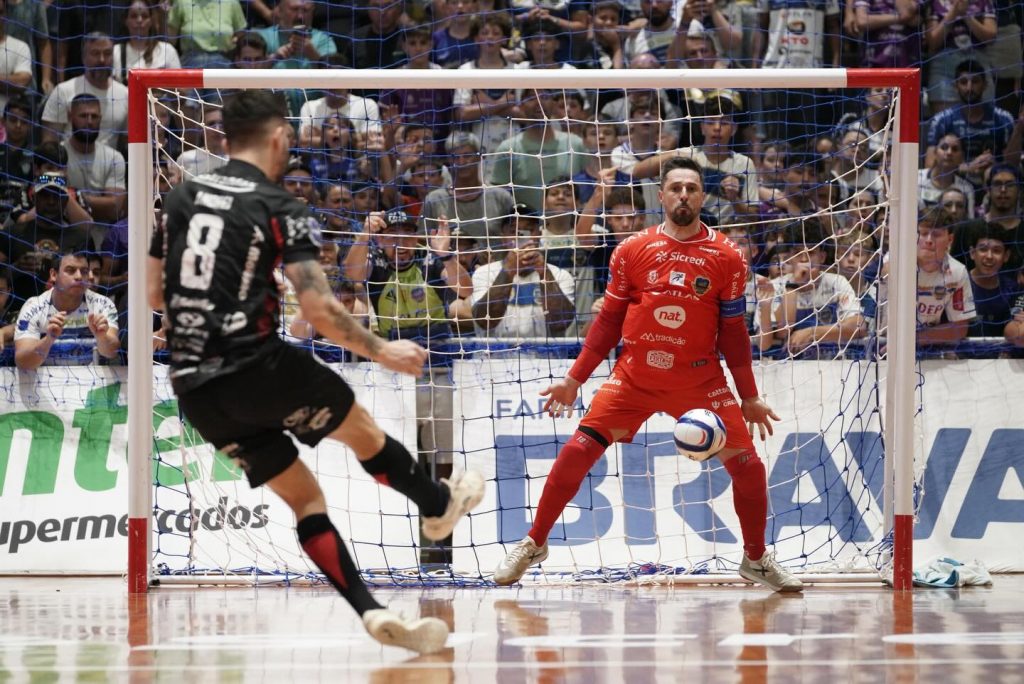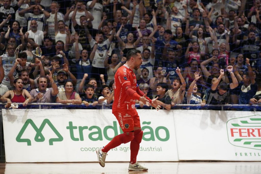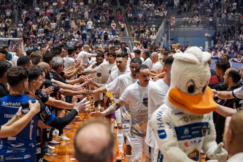 Com o revés no jogo de ida, em Campo Mourão, por 3 x 1, o Pato Futsal entrou em quadra na decisão da Série Ouro precisando vencer no tempo normal para levar a disputa à prorrogação. Com a Arena Cláudio Petrycoski lotada, o Pato começou em cima, mas foi o Campo Mourão quem abriu o placar, aos seis minutos. Em contra-ataque, Renan tocou de calcanhar, e Jhony bateu forte para fazer o gol.
