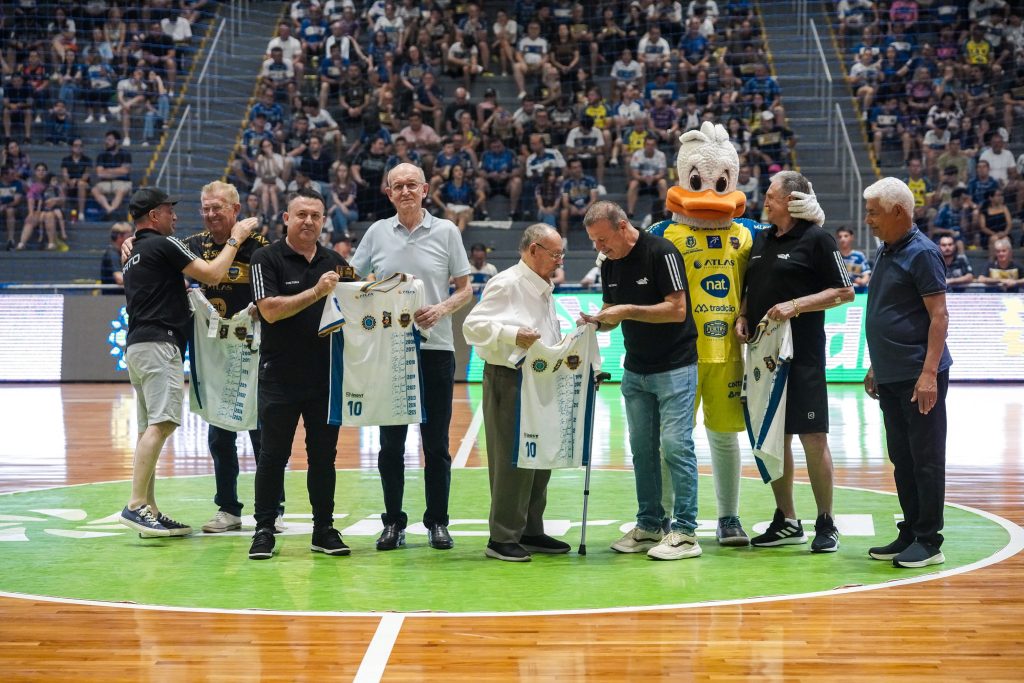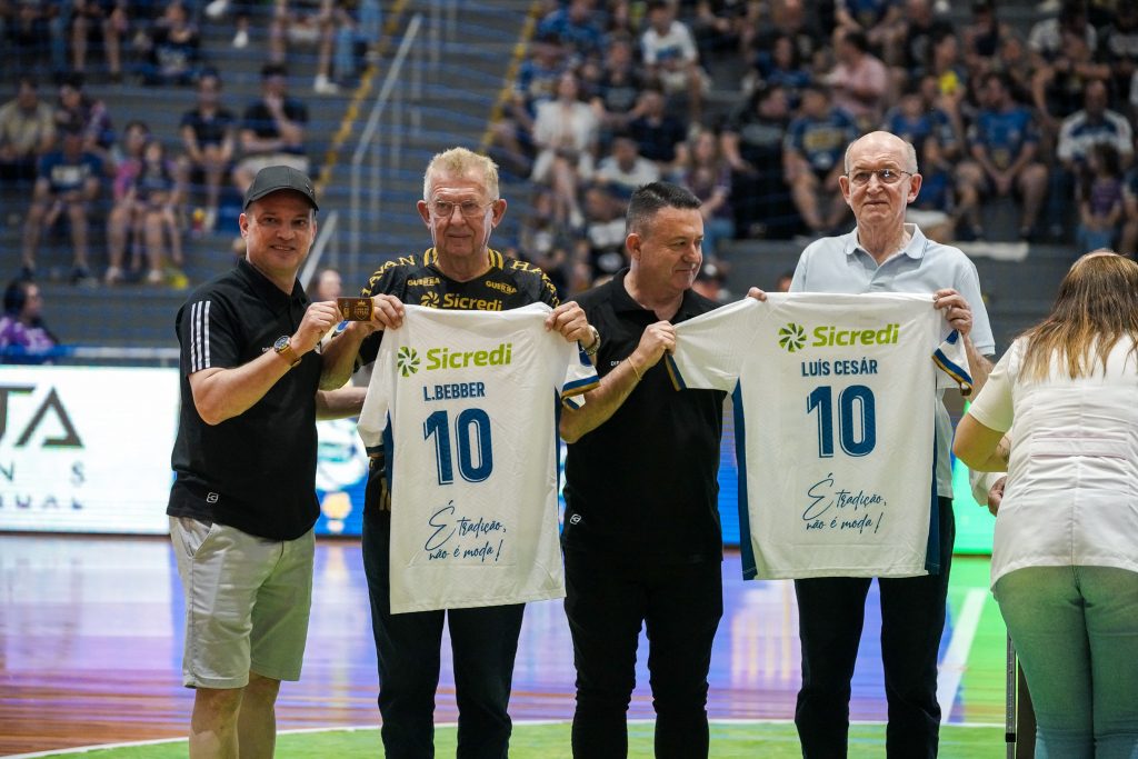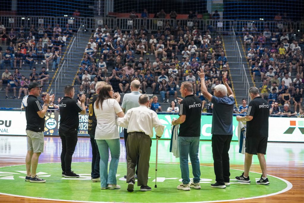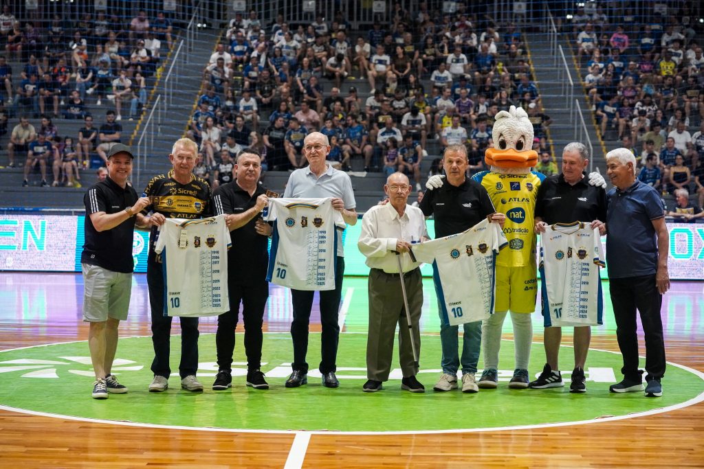 O Pato Futsal prestou homenagem para quatro lendas do futsal pato-branquense. Luís César Burgardt, Luiz Silva (Pernambuco), Luiz Bebber e Aníbal Paes, que fizeram parte da história do futsal de Pato Branco, especialmente nas décadas de 1980 e 1990, foram reverenciados antes da estreia do Pato Futsal na Série Ouro do Campeonato Paranaense, neste sábado (14), na Arena Cláudio Petrycoski, em Pato Branco. As lendas também receberam todo carinho e os aplausos da torcida.