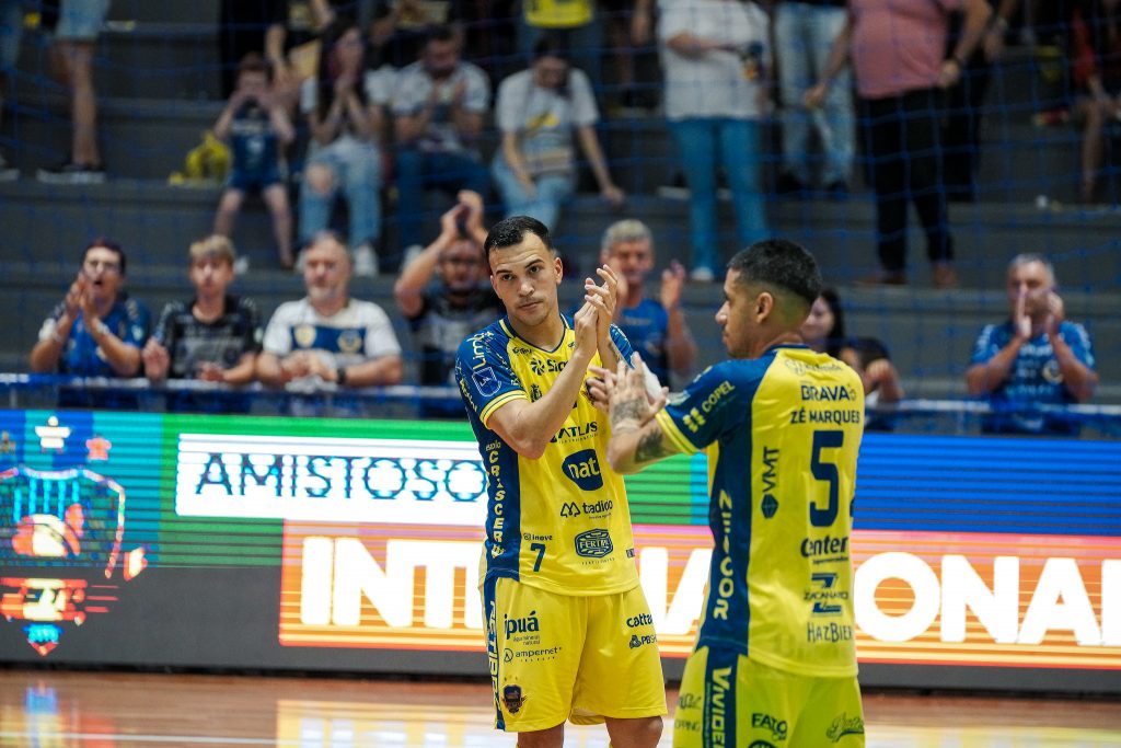 A partida marcou a estreia de oito atletas com a camisa do Pato Futsal, além do retorno do ala Dudu, que estava no Fortaleza/CE. O fixo Biel, os alas Mendes, Guilherme, Neto, Léo Catolé e Vitinho, além dos pivôs Calvanese e Gui Reis, fizeram o primeiro jogo com o manto do Pato Futsal.